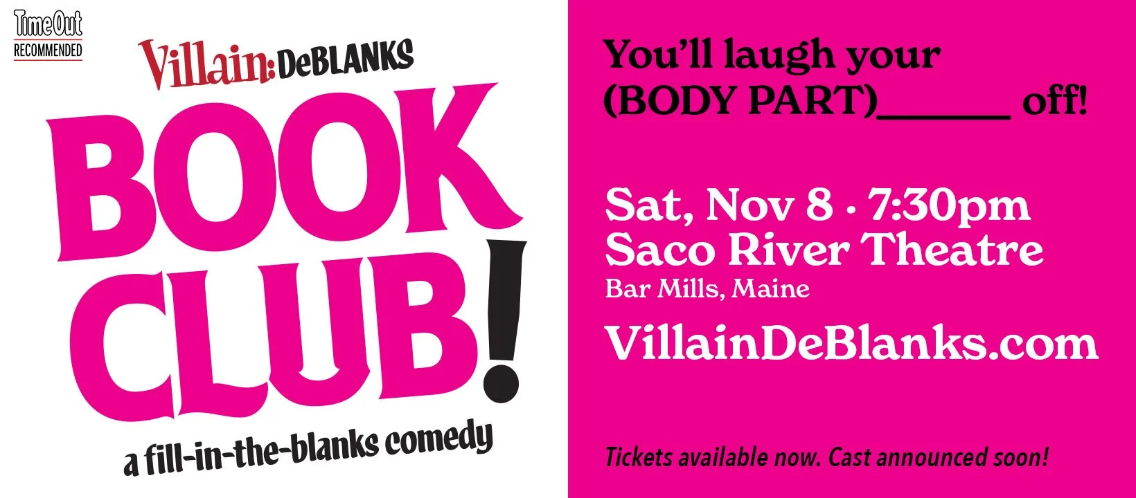 It’s the first meeting of Phyll-Ann DeBlanks’ new book club – but the hostess is dead. Six suspects, one victim, and only two-thirds of a script. Our hilarious cast needs YOU to help them fill in the blanks, Mad Libs-style, to help solve this ridiculous murder mystery.